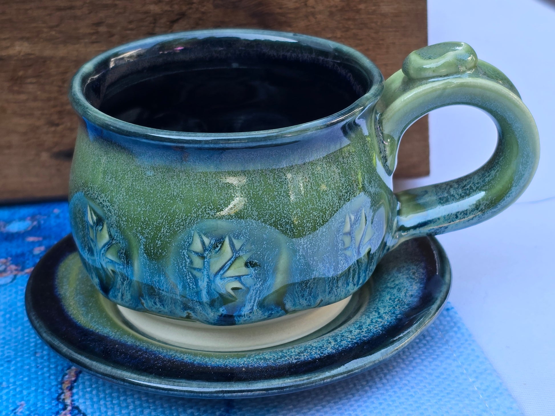 This gorgeous high fire espresso/Tea cup set is so beautiful, after trials I have more in the works coming soon.