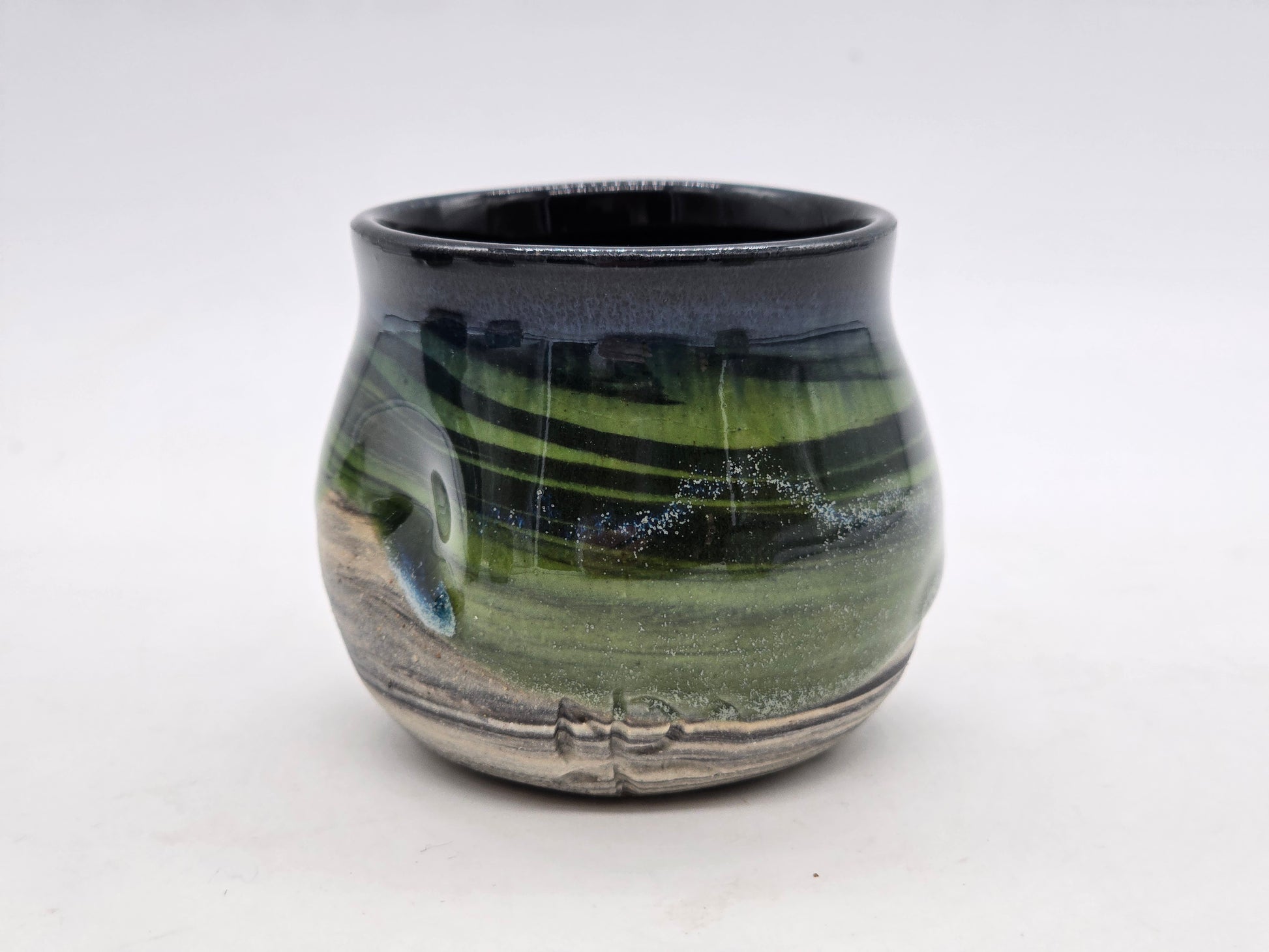 Hand made and wheel thrown after a process of creating a clay body with a driftwood like look once completed.